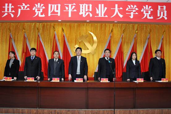 2018年12月8日, 在雄壯的《國歌》聲中,中國共產黨四平職業大學黨員大會在行政辦公樓報告廳勝利召開。