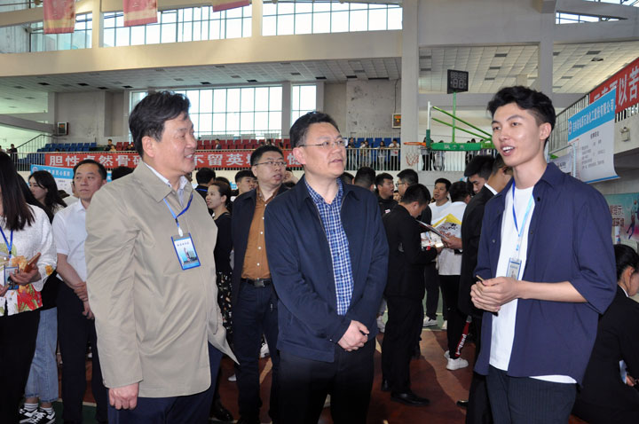 市委常委、副市長任小龍與參加雙選會的學生親切交談