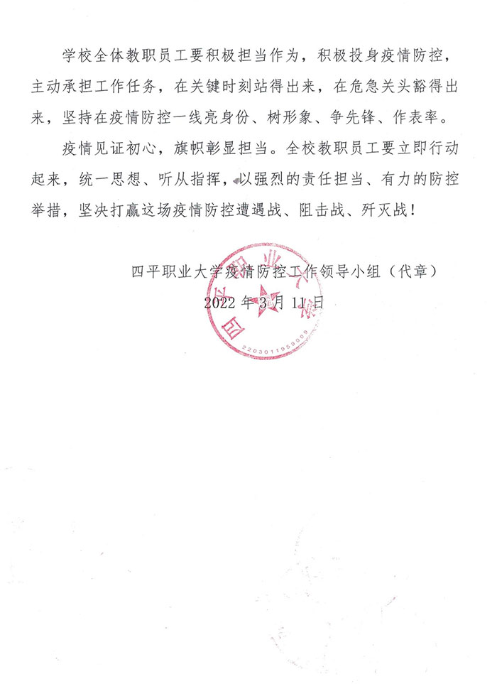 致四平職業(yè)大學(xué)全體教職員工的倡議書(shū)