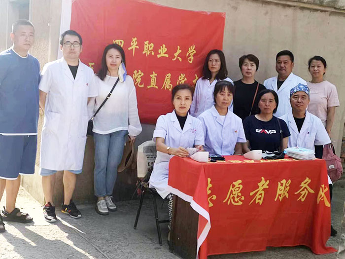 四平職業大學醫藥學院黨員志愿者與東方社區工作人員合影留念