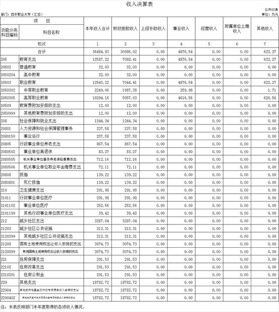 高等職業教育:反映各部門舉辦的本科、專科層次職業教育支出。政府各部門對社會組織等舉辦的本科、專科層次職業院校的資助,如捐贈、補貼等,也在本科目中反映。