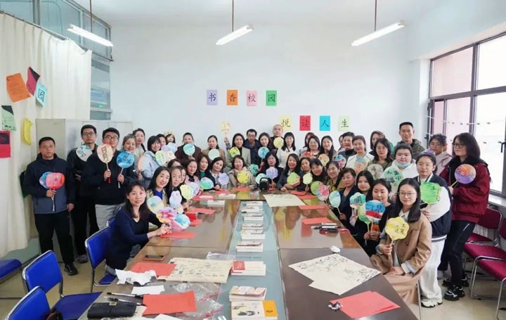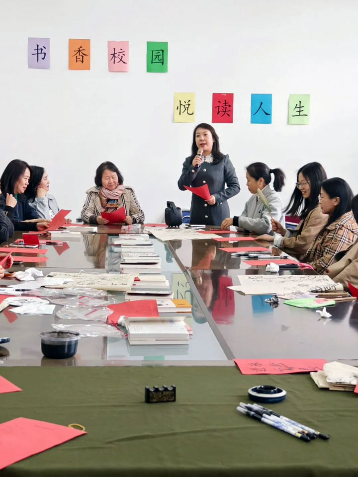 活動(dòng)結(jié)束后,閱覽室內(nèi)漆香未散,琴韻猶存,教職工們以“書(shū)香校園·悅讀人生”為背景,手持漆扇合影留念,將這份獨(dú)特的四月記憶轉(zhuǎn)化為教育生涯中的文化養(yǎng)分。