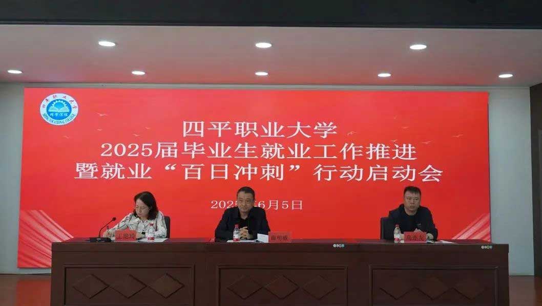 為深入貫徹落實上級關于高校畢業生就業工作的決策部署,全力推動2025屆畢業生高質量充分就業,6月5日,四平職業大學召開2025屆畢業生就業工作推進暨就業“百日沖刺”行動啟動會。學校黨委書記曲明威出席會議并講話,副校長王艷玲主持會議,四平衛校校長高連友(醫藥學院負責人)、各學院院長、書記、畢業班輔導員、就業工作包保老師、校企合作專業企業方負責人及招生就業處全體工作人員參會。