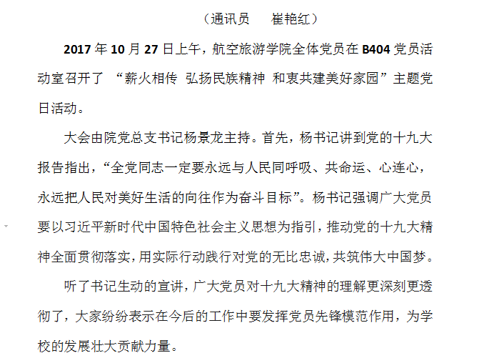航空旅游學院“薪火相傳 弘揚民族精神 和衷共建美好家園”主題黨日