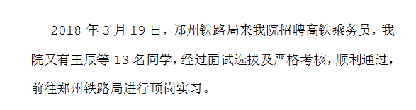祝賀我院13名同學到鄭州鐵路局頂崗實習