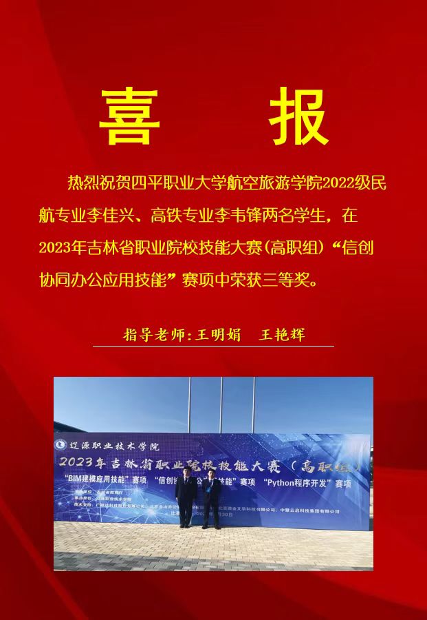 喜報:我院學生榮獲2023年吉林省職業院校技能大賽(高職組)“信創協同辦公應用技能”賽項三等獎