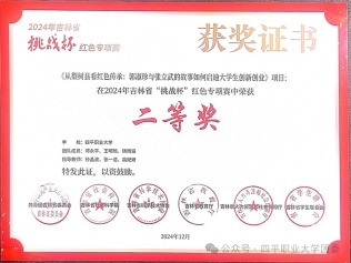 在2024年吉林省“挑戰杯”紅色專項賽中,我院學生鄧永平(23高速鐵路客運服務專業)、王明琦(23民航安全技術管理專業)、矯雨涵(24民航安全技術管理專業)組成的參賽團隊,憑借著出色的團隊協作能力,以及對紅色文化的深刻理解,取得了優異成績,其參賽項目《從梨樹縣看紅色傳承:郭淑珍與張立武的故事如何啟迪大學生創新創業》榮獲二等獎。