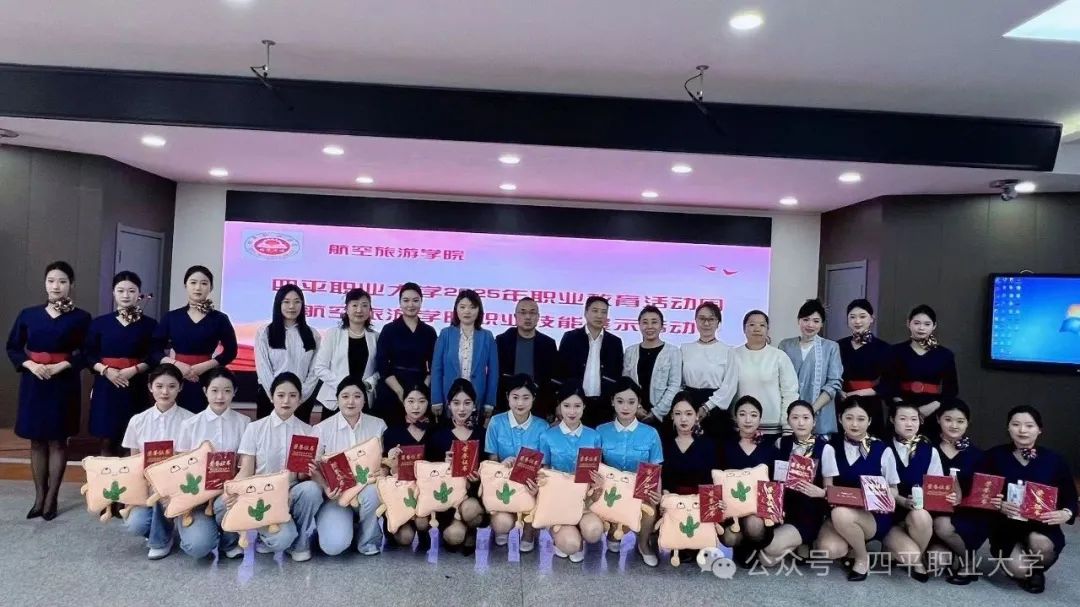為深入貫徹落實(shí)教育部等九部門《關(guān)于辦好2025年職業(yè)教育活動周的通知》精神,四平職業(yè)大學(xué)航空旅游學(xué)院于5月21日在第一教學(xué)樓小報告廳舉行“技能點(diǎn)亮夢想 匠心鑄就未來——四平職業(yè)大學(xué)2025年職業(yè)教育活動周航空旅游學(xué)院職業(yè)技能展示”活動。四平職業(yè)大學(xué)副校長溫立有、學(xué)生處處長李起東、公寓中心主任劉成、團(tuán)委書記秦楠及航空旅游學(xué)院全體師生參加了本次活動。活動由學(xué)工辦主任高妃妍主持。