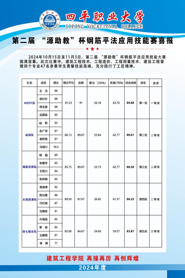 2024年10月15日至11月3日,第二屆“源助教”杯鋼筋平法應用技能大賽圓滿落幕。這次比賽中,建筑工程技術、工程造價、工程測量技術、建設工程管理四個專業47名參賽學生勇攀技能高峰,充分踐行了工匠精神。