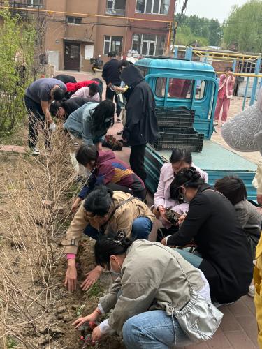 活動當天,二十余名黨員與志愿者一早便抵達社區。大家分工明確、配合默契,迅速投入勞動。有的拿起鐵鍬翻耕土地,為播種做好準備;有的仔細清理花壇內的雜草、石塊;還有的負責搬運花苗、花種,確保后續種植工作順利開展。在種植過程中,專業出身的黨員教師充分發揮自身優勢,向志愿者與社區居民講解花卉種植技巧,從挖坑深度、間距把控到澆水頻率,都一一耐心說明,現場氣氛熱烈而有序。