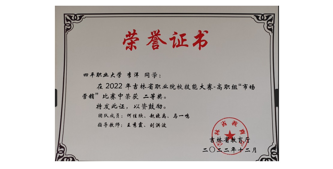 當前位置:市場營銷專業喜獲2022年吉林省高職高專職業技能大賽二等獎