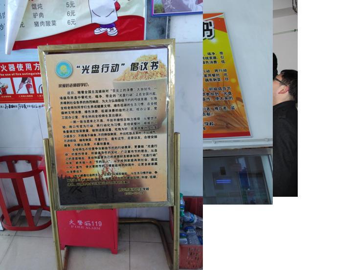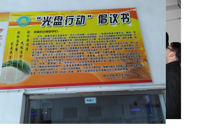 這幾天四平市醫護衛生學校餐廳多了幾塊KT板,除了餐廳的整體形象增色不少外,更是悄悄的改變了學生們的就餐習慣。大家都暗暗的在心里“較勁、攀比”,看誰吃的最干凈。大改從前打飯時多多益善,吃不了時統統倒掉的“瀟灑”行為。原來這都得益于由學校多部門組織的《光盤行動倡議書》。據食堂管理員李老師說,這幾天孩子們的浪費現象明顯改善,原來一頓飯要倒掉兩三百斤的飯菜,現在一天下來也收不了幾斤,就連收該水桶的大爺都不愿意來了。