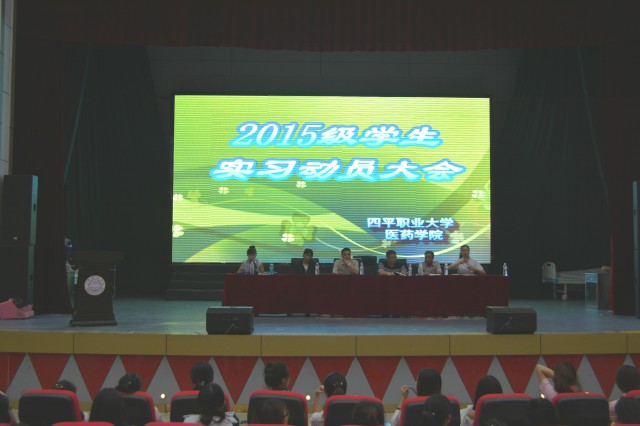 為貫徹落實《職業學校實習管理規定》和《四平職業大學學生實訓管理制度》的要求,醫藥學院于2017年6月20在學校綜合報告廳召開2015級學生實習動員大會,醫藥學院院長賈慶國,黨總支書記李曉平,副院長張忠海、張金鳳,黨總支副書記劉洋,實習實訓辦主任王麗艷,2015級全體學生參加了大會。