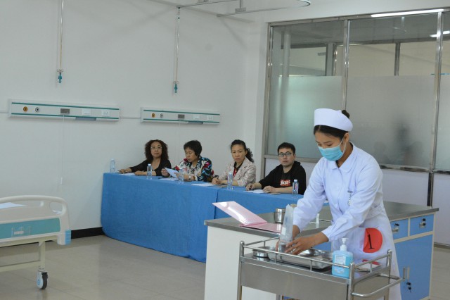 醫(yī)藥學院舉辦第一屆護理專業(yè)技能大賽 根據學校本學期教學工作重點和醫(yī)藥學院的工作安排,為提高學生護理技術的操作能力,強化專業(yè)特色,激發(fā)學生積極學習的熱情,營造良好的學習氛圍。醫(yī)藥學院于本學期舉辦第一屆護理技能大賽,參賽對象是2015級護理專業(yè)的是學生。通過初賽護理專業(yè)共24人進入決賽。 6月10日,醫(yī)藥學院第一屆護理技能大賽決賽在校圖書館四樓護理實訓室正式舉行,學院特邀了以四平市中心醫(yī)院為首的六家實習合作單位的主管護理院長及護理部主任等護理專家擔任評委。比賽中選手們沉著冷靜、熟練準確的完成了技能當中的各個步驟,充分體現了扎實的基本功和良好的心理素質。經過評委專家的認真評比,兩項比賽各評出:單項獎一等獎1名、二等獎4名、三等獎6名。護理技能綜合獎一等獎1名、二等獎2名、三等獎3名. 本次大賽加強了同學們的護理理論知識,強化實踐技能,能夠讓2015級護理專業(yè)的同學們在進入臨床之前之前,在學校體驗一下模擬護士的感覺。通過此次活動的開展,提高了醫(yī)藥學院學生的學習興趣與熱情,以賽促教,以賽促學,有效的檢驗了學生技能水平掌握情況,夯實了學生的專業(yè)基礎。