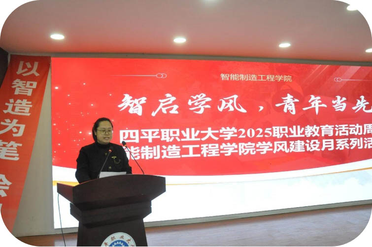 呂英蘭書記在發(fā)言中首先代表智能制造工程學院全體師生,向那些長期以來默默奉獻在教學一線的老師們致以最崇高的敬意。并對全體學生寄予殷切期望,希望同學們以本次學風建設活動月為契機,從我做起,從現(xiàn)在做起,用實際行動踐行“智啟學風,青年當先”的誓言。以更高的站位、更廣闊的視野、更強的執(zhí)行力,把握時代機遇,厚植家國情懷,練就過硬本領,在時代浪潮中書寫屬于機電學子的輝煌篇章。
