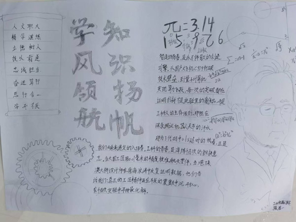 學風建設是高校教育的重要組成部分,良好的學風對于塑造積極向上的校園文化、提升學生的學習效果和培養優秀的人才具有至關重要的作用。 為推動學風建設,提高同學們的學習熱情和綜合素質,進一步落實立德樹人根本任務,營造良好的育人氛圍,引導學生明確學習目標,提高學生參與度,智能制造工程學院于學風建設活動月期間,組織開展了以“工匠精神正學風”為主題的手抄報制作活動。 |
