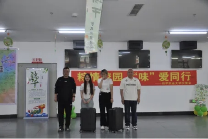 2025年5月28日下午,四平職業大學伙委會聯合招商積余物業公司及300余名學生在校學生食堂開展了“粽情校園 ‘味’愛同行”迎端午主題活動。通過“你比我猜”、“兩人三足”、包粽子體驗等環節,師生共話傳統佳節,暢享健康飲食理念。
